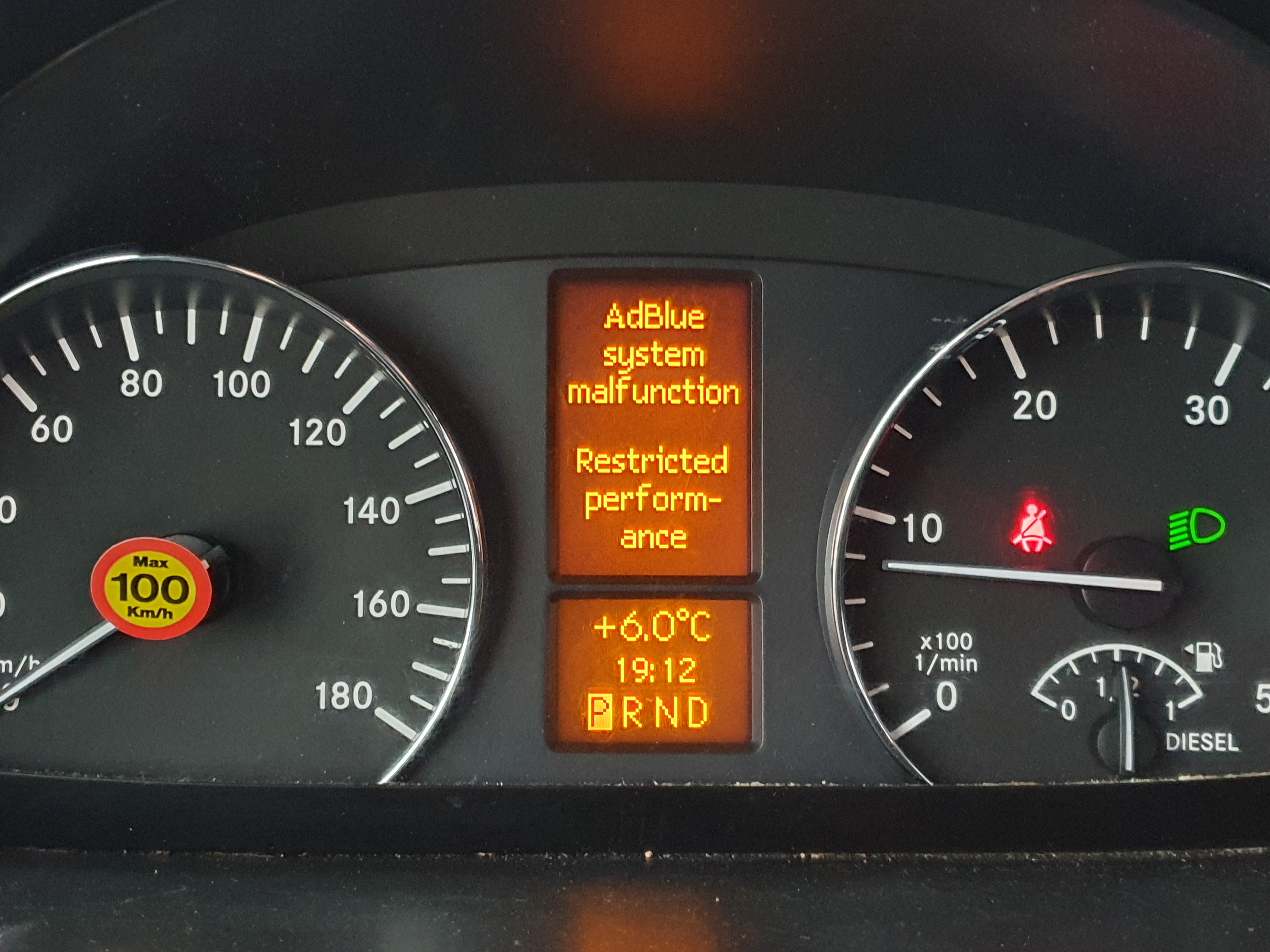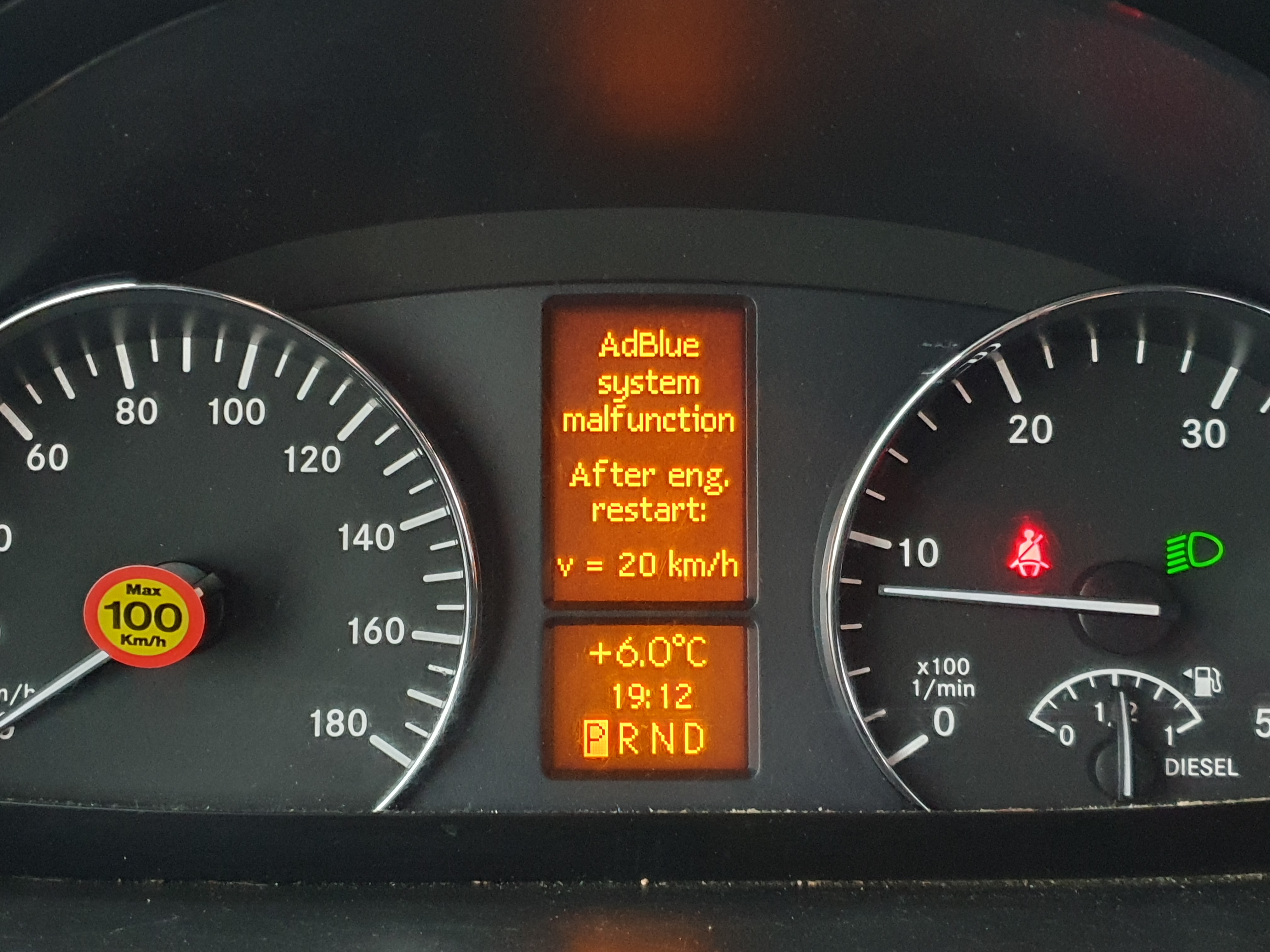 - 2. Varningslampor lyser // Fault messages ON (Ad blue fel)