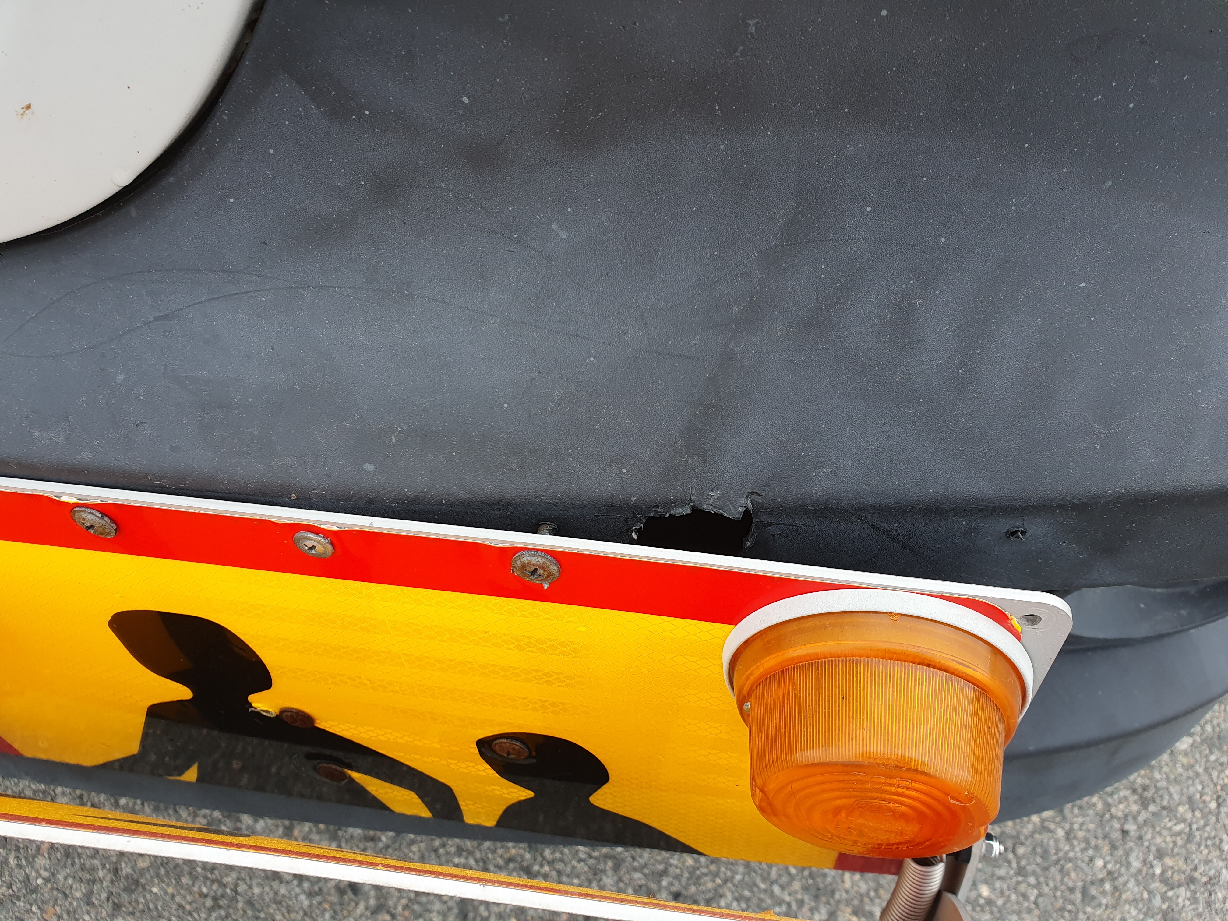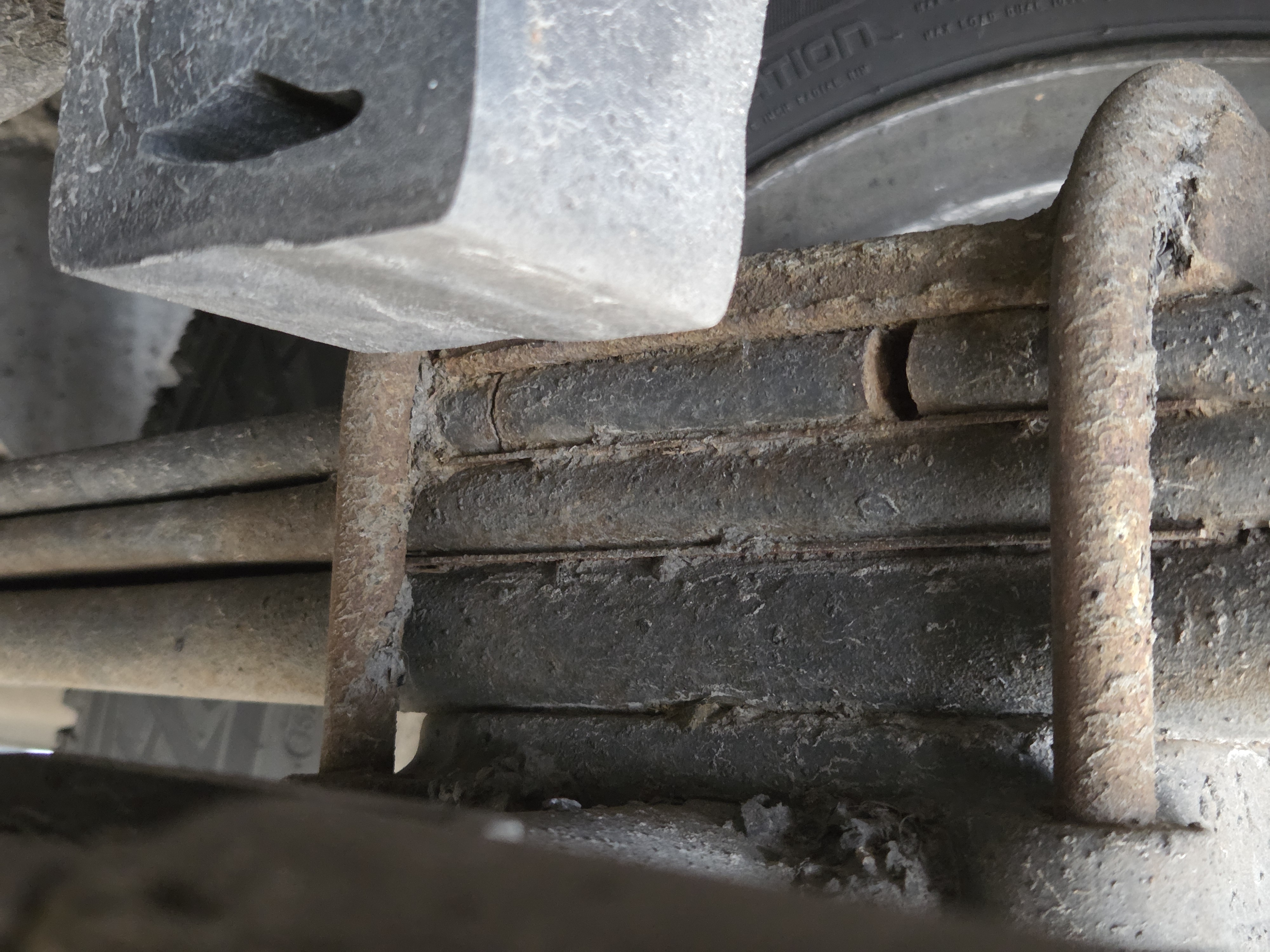 - 2. Fjärdrar bälgar sprickor läckage // SPRINGS AIR BELLOWS CRACKS OR LEAKS (Buss har två sprickor i den bakre högra fjädern.)